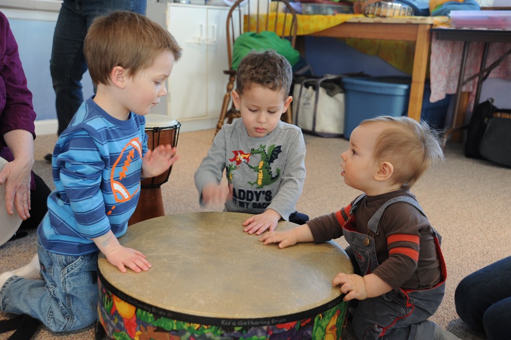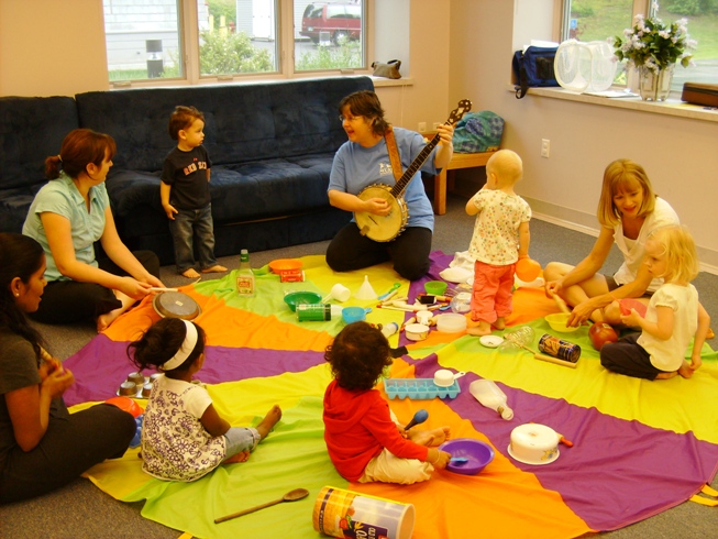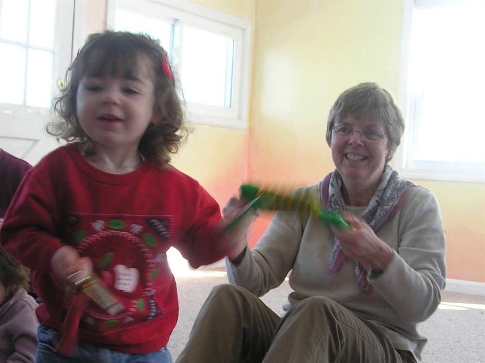 Jammin' with Amy's banjo and our "kitchen instruments" at Temple Beth Abraham in Nashua.