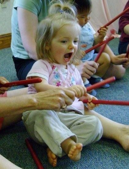 Sticks help us practice our microbeats and macrobeats, and they make great bunny ears too!